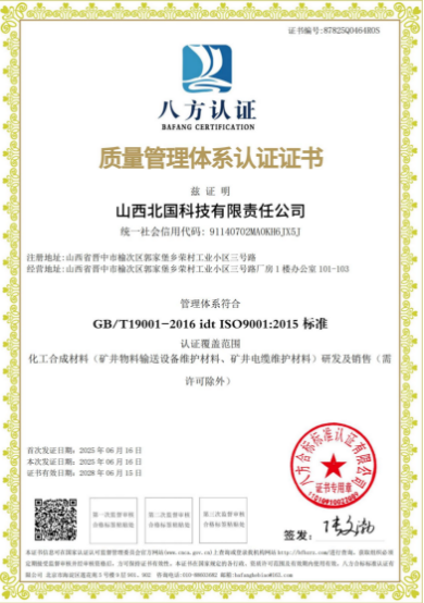 山西北国科技有限责任公司在多年企业矿井运营维护中,根据企业矿井实际工矿环境和使用条件,在物料输送维护沿线硏制开发了励诚管道、励诚涂层、励诚输送带及时修补胶、励诚输送带、励诚滚筒、励诚托辊、励诚支架、励信高压雾森系统及其他系列辅助材料、工具;在矿井电缆维护沿线研制开发了励诚电缆及时修补胶、励诚简制维修模具套及其他辅助材料和工具等。研制产品在企业矿井实际应用中,操作简单,快捷、方便,可及时的、处理好企业矿井物料输送和电缆维护的沿线问题。经过多年的研发和改进,产品广销晋、冀、陕、蒙、豫、鲁,京,津,沪,辽,吉,黒,苏,浙,闽,赣,粤,湘,桂,琼,川,黔,滇,渝,藏,陇,宁,新,青各省,深受广大企业矿井的信赖和欢迎!